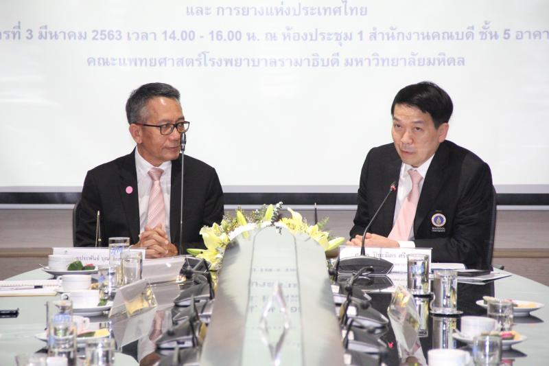 วันนี้ (3 มี.ค. 63) การยางแห่งประเทศไทย (กยท.) ร่วมกับ มหาวิทยาลัยมหิดล (คณะแพทยศาสตร์โรงพยาบาลรามาธิบดี) จัดพิธีลงนามบันทึกข้อตกลงความร่วมมือ (MOU) ด้านการวิจัยและพัฒนายางพาราสู่แบบจำลองทางการแพทย์ ต่อยอดโมเดลผลิตภัณฑ์ยางพาราเป็นสื่อการเรียนการสอนในวงการแพทย์ หนุนเพิ่มปริมาณการใช้ยางในประเทศมากยิ่งขึ้น ฯ ณ ห้องประชุม 1 สำนักงานคณบดี ชั้น 5 อาคารบริหาร คณะแพทยศาสตร์โรงพยาบาลรามาธิบดี มหาวิทยาลัยมหิดล