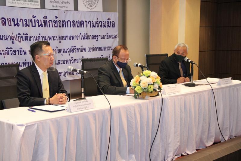 นายณกรณ์ ตรรกวิรพัท รองผู้ว่าการการยางแห่งประเทศไทย ด้านธุรกิจและปฏิบัติการ เปิดเผยภายหลังการลงนามบันทึกข้อตกลงครั้งนี้ว่า กยท. ร่วมกับ สคช. และ มอ. มีจุดประสงค์ร่วมกันในการส่งเสริมให้กลุ่มผู้ปฏิบัติงานด้านเพาะปลูกยางพารา จำนวน 7 อาชีพ ที่กำหนดในมาตรฐานอาชีพและคุณวุฒิวิชาชีพ ให้มีความรู้ความสามารถด้านการปฏิบัติงานได้ถูกต้องตามหลักวิชาการ และสอดคล้องกับความต้องการของผู้ประกอบการในปัจจุบัน ทำให้ผู้ปฏิบัติงานด้านเพาะปลูกยางพาราระดับครัวเรือน ลดต้นทุนการผลิต และเพิ่มรายได้อย่างยั่งยืน อีกทั้งยังช่วยให้ผู้ปฏิบัติงานด้านเพาะปลูกยางพารา สามารถจัดการสวนยางพาราได้อย่างมีมาตรฐานและยกระดับการปฏิบัติงานสู่มาตรฐานสากลอีกด้วย