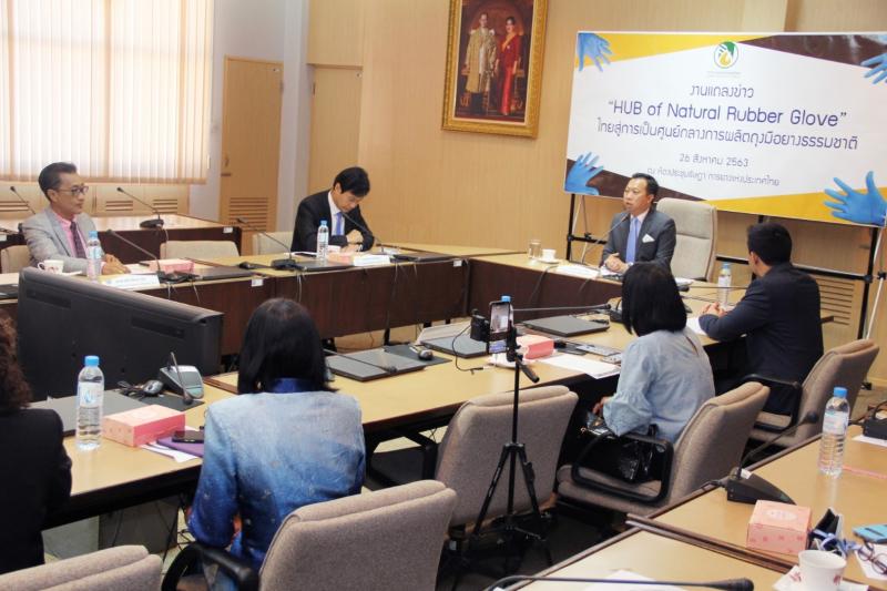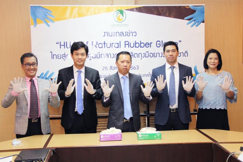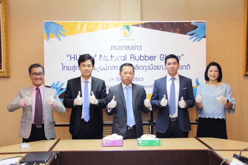 วันนี้ (26 สิงหาคม 2563) การยางแห่งประเทศไทย (กยท.) เปิดแถลงข่าว "Hub of Natural Rubber Glove ไทยสู่การเป็นศูนย์กลางการผลิตถุงมือยางธรรมชาติ ประกาศชัดเจนให้ประเทศไทยเป็นศูนย์กลางการผลิตถุงมือยางธรรมชาติของโลก ชูวัตถุดิบน้ำยางไทย ต่อยอดอุตสาหกรรมแปรรูปยางพารา ณ ห้องประชุมรัษฎา การยางแห่งประเทศไทย บางขุนนนท์