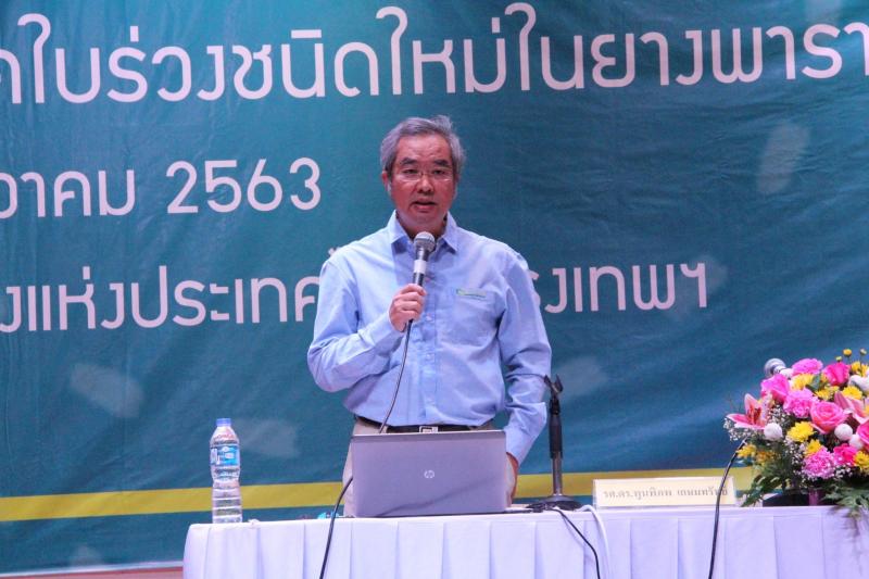 นายณกรณ์ ตรรกวิรพัท ผู้ว่าการการยางแห่งประเทศไทย ในฐานะประธานเปิดงานสัมมนา "ไขทางออกแก้ปัญหาโรคใบร่วงชนิดใหม่ในยางพาราแบบบูรณาการ” กล่าวว่า ปัญหาโรคใบร่วงชนิดใหม่ในยางพารา เริ่มระบาดเข้าสู่ประเทศเมื่อปี พ.ศ. 2562 มีพื้นที่การระบาดประมาณ 800,000 ไร่ ส่งผลให้ใบยางพาราเกิดอาการร่วงอย่างรุนแรง ทำให้ผลผลิตยางพาราลดลงถึงร้อยละ 50 เกษตรกรชาวสวนมีรายได้ลดลงตามไปด้วย ซึ่งในปีนี้พื้นที่การระบาดค่อนข้างใกล้เคียงกับปีที่ผ่านมา กยท. ในฐานะผู้รับผิดชอบหลักในการบริหารจัดการโรคใบร่วงฯ มีหน้าที่ดำเนินการมาตรการต่างๆ ได้แก่การศึกษาข้อมูลพื้นฐานโรค การประชาสัมพันธ์ให้ความรู้เกษตรกรชาวสวนยางและผู้เกี่ยวข้อง กำหนดมาตรการป้องกัน และมาตรการยับยั้ง เป็นต้น แต่เนื่องจากเป็นโรคอุบัติใหม่ การเข้าไปดำเนินการกับต้นยางพาราซึ่งมีขนาดใหญ่ในสภาพแปลงที่มีลักษณะทางภูมิประเทศและสภาพแวดล้อมที่ต่างกัน จึงยังขาดข้อมูลพื้นฐานและข้อมูลในเชิงเทคนิคบางประการที่ต้องบูรณาการร่วมกับหน่วยงาน อื่น ๆ จึงเป็นที่มาของการจัดสัมมนาในครั้งนี้