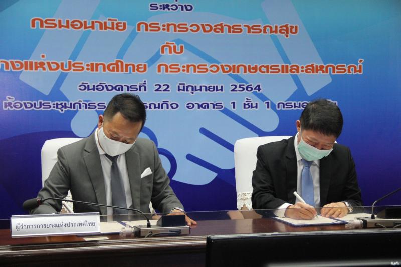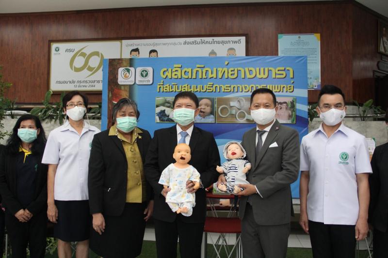 วันนี้ ( 22 มิ.ย.64) การยางแห่งประเทศไทย (กยท.) ร่วมกับ กรมอนามัย (กอ.) ลงนามบันทึกข้อตกลงความร่วมมือ การพัฒนาสื่อส่งเสริมความรอบรู้เพื่อสุขภาพและสุขภาพช่องปากของผู้ป่วยปากแหว่งเพดานโหว่และกลุ่มเฉพาะกลุ่มพิเศษ นำองค์ความรู้ทันตกรรม-แปรรูปผลิตภัณฑ์ยาง ผลิตสื่อโมเดลและตุ๊กตา เพื่อพัฒนาสื่อใช้ในงานทันตสาธารณสุขด้วยวัสดุยางในประเทศ ส่งเสริมความรอบรู้สุขภาพของบุคลากรสาธารณสุขและผู้ปกครอง ณ ห้องประชุมกำธร สุวรรณกิจ อาคาร 1 ชั้น 1 กรมอนามัย