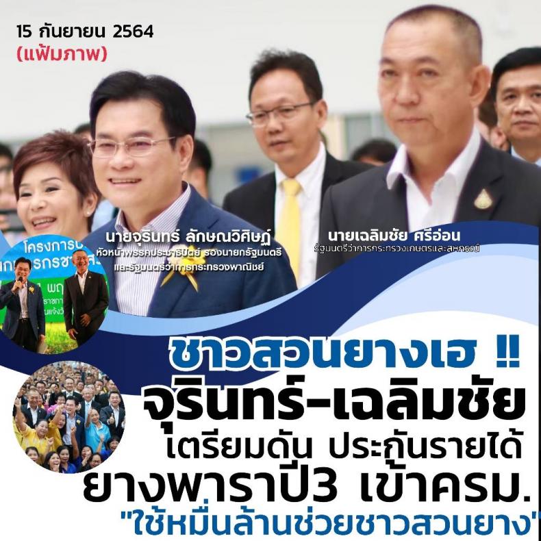 ชาวสวนยางเฮ !! จุรินทร์-เฉลิมชัย เตรียมดัน ประกันรายได้ยางพาราปี3 เข้าครม. "ใช้หมื่นล้านช่วยชาวสวนยาง"