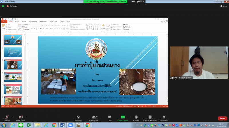 พร้อมกันนี้ ได้รับเกียรติจากวิทยากรของกรมพัฒนาที่ดิน นางสาวสลิลา เอี่ยมอิทธิพล นักวิชาการเกษตร ชำนาญการพิเศษ บรรยายในหัวข้อ "Zoning by Agri-map” นายดิเรก คงแพ นักวิเคราะห์นโยบายและแผนชำนาญการพิเศษ บรรยายในหัวข้อ "การทำปุ๋ยในสวนยางพารา”