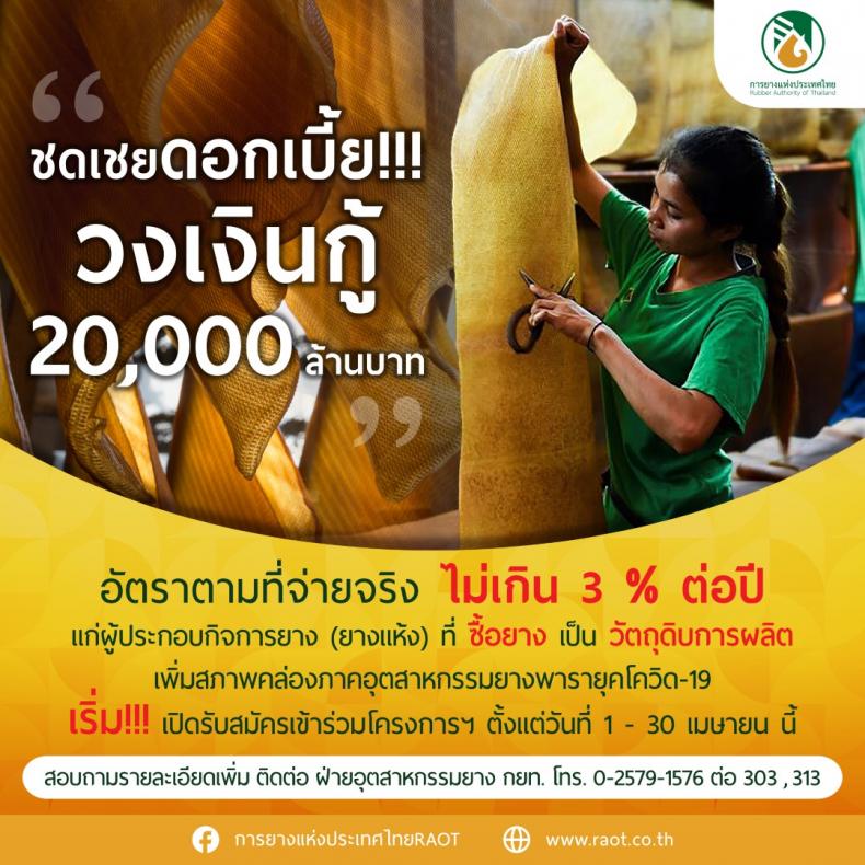 นายณกรณ์ ตรรกวิรพัท ผู้ว่าการการยางแห่งประเทศไทย (กยท.) เปิดเผยว่า คณะกรรมการ กยท. ได้เห็นชอบให้ดำเนินโครงการ "ชดเชยดอกเบี้ยให้แก่ผู้ประกอบกิจการยาง(ยางแห้ง) ที่รับซื้อยางจากเกษตรกรชาวสวนยางและสถาบันเกษตรกรชาวสวนยาง" โดยผู้ประกอบกิจการยางที่เข้าร่วมโครงการฯ จะต้องซื้อยางมาใช้เป็นวัตถุดิบในการผลิตยาง ซึ่งมีการกู้เงินระยะสั้นจากสถาบันการเงิน ทั้งนี้ รัฐบาลโดย กยท. จะสนับสนุนชดเชยดอกเบี้ยในอัตราตามที่จ่ายจริง แต่ไม่เกินร้อยละ 3 ต่อปี ระยะเวลาโครงการ 1 ปี (ไม่เกิน ธันวาคม 2565) วงเงินกู้รวมทั้งโครงการไม่เกิน 20,000 ล้านบาท เพื่อให้เกิดการหมุนเวียนผลผลิต ช่วยดูดซับยางพาราออกจากระบบมาใช้เป็นวัตถุดิบสำหรับผู้ประกอบการในลักษณะหมุนเวียน เสริมสร้างศักยภาพโครงสร้างอุตสาหกรรมยาง พร้อมแข่งขันทั้งภายในและต่างประเทศในสถานการณ์ที่เปลี่ยนแปลง ทำให้เกษตรกรชาวสวนยางและสถาบันเกษตรกรชาวสวนยางมีรายได้และคุณภาพชีวิตที่ดีขึ้น ทั้งนี้ ผู้ประกอบการที่เข้าร่วมโครงการจะต้องรับซื้อยางในราคาเฉลี่ยรายเดือนไม่ต่ำกว่า ราคาประกาศเฉลี่ยของ กยท.