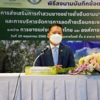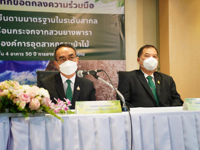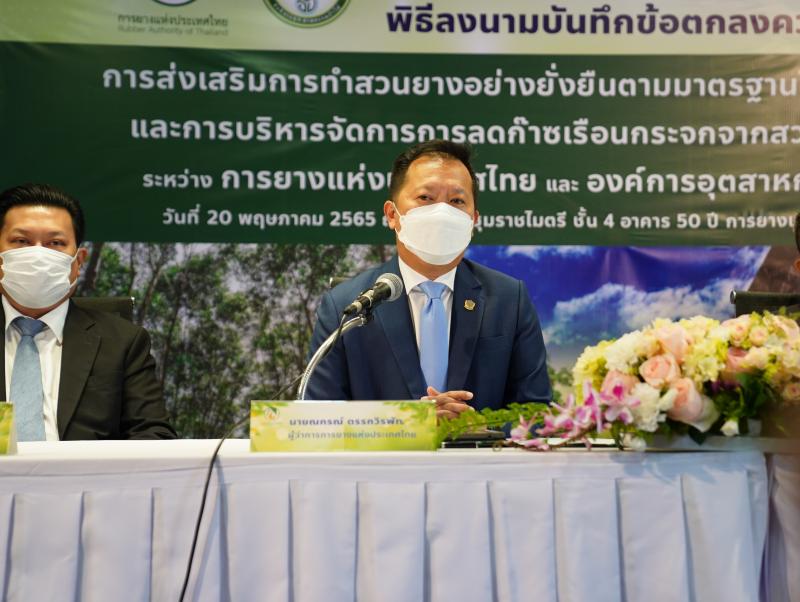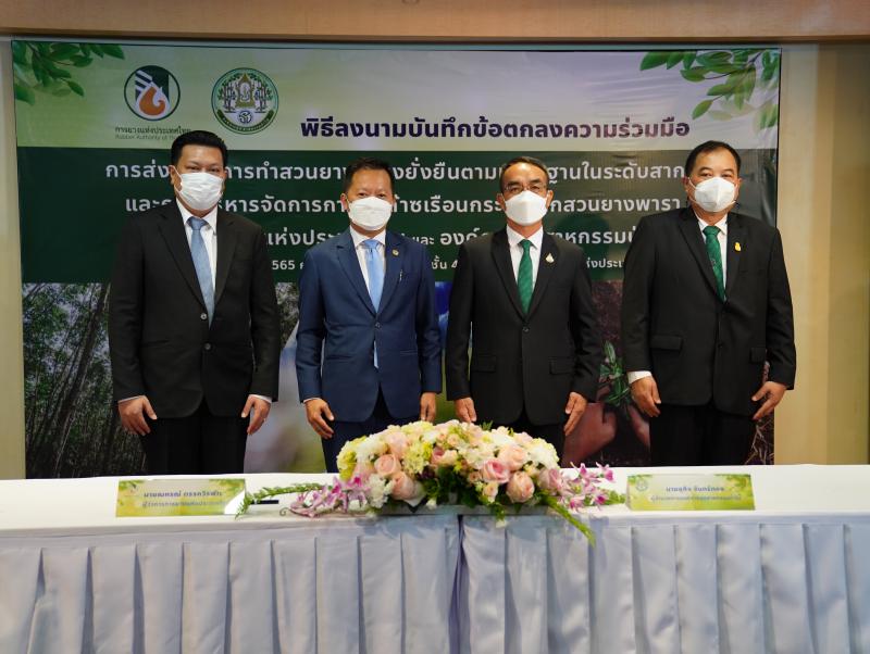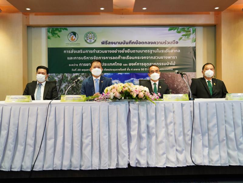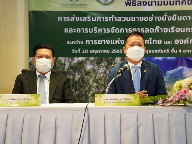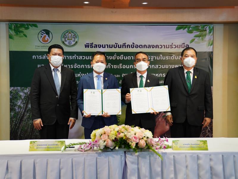 เมื่อวันที่ 20 พฤษภาคม 2565 นายณกรณ์ ตรรกวิรพัท ผู้ว่าการการยางแห่งประเทศไทย และ นายสุกิจ จันทร์ทอง ผู้อำนวยการองค์การอุตสาหกรรมป่าไม้ ร่วมลงนามในบันทึกข้อตกลงความร่วมมือ การส่งเสริมการทำสวนยางอย่างยั่งยืนตามมาตรฐานในระดับสากล และการบริหารจัดการการลดก๊าซเรือนกระจกจากสวนยางพารา ระหว่าง การยางแห่งประเทศไทย (กยท.) และ องค์การอุตสาหกรรมป่าไม้ (อ.อ.ป.) ณ ห้องประชุมราชไมตรี (ชั้น 4) อาคาร 50 ปี การยางแห่งประเทศไทย กรุงเทพฯ