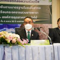 ด้าน นายสุกิจ จันทร์ทอง ผู้อำนวยการการองค์การอุตสาหกรรมป่าไม้ (ผอ.อ.อ.ป.) เปิดเผยว่า การลงนามในบันทึกข้อตกลงความร่วมมือการส่งเสริมการทำสวนยางอย่างยั่งยืนตามมาตรฐานในระดับสากล และการบริหารจัดการลดก๊าซเรือนกระจกจากสวนยางพารา เป็นความร่วมมือเชิงยุทธศาสตร์ ที่มุ่งเน้นดำเนินตามพันธกิจของรัฐวิสาหกิจ ของ อ.อ.ป. และ กยท. ซึ่งการลงนามในครั้งนี้ มีวัตถุประสงค์ร่วมกัน เป็นการแลกเปลี่ยน องค์ความรู้ นวัตกรรม และพัฒนาศักยภาพด้านการจัดการสวนยางพาราอย่างยั่งยืนตามมาตรฐานในระดับสากล ให้ได้ตามมาตรฐาน FSCTM, PEFCTM ตลอดจนแลกเปลี่ยนองค์ความรู้ นวัตกรรมและพัฒนาศักยภาพด้านการบริหารจัดการการลดก๊าซเรือนกระจกจากสวนยางพารา และสร้างโอกาสในธุรกิจคาร์บอนเครดิตจากสวนยางพารา
