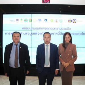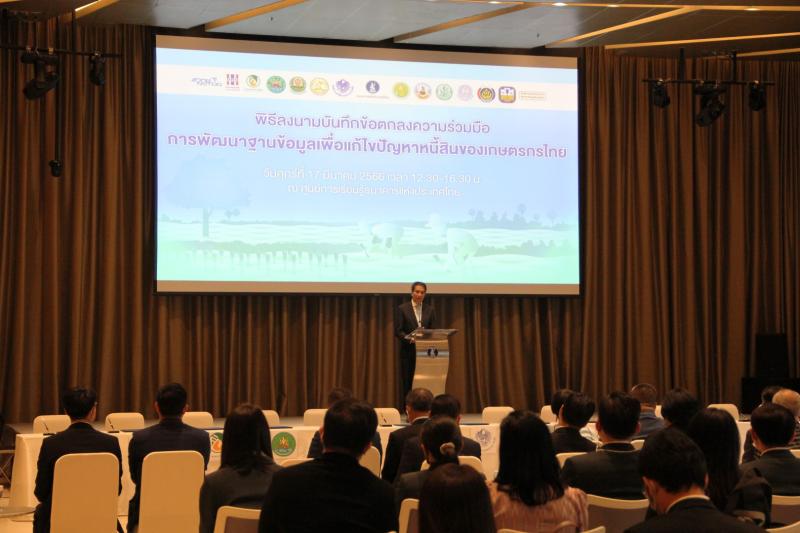 นายณกรณ์ ตรรกวิรพัท ผู้ว่าการการยางแห่งประเทศไทย (กยท.) เปิดเผยว่า สืบเนื่องจากคำสั่งสำนักนายกรัฐมนตรีมอบหมายให้ธนาคารแห่งประเทศไทย (ธปท.) และธนาคารเพื่อการเกษตรและสหกรณ์การเกษตร (ธกส.) ศึกษาปัญหาและศักยภาพของเกษตรกรไทย รวมทั้งสร้างรากฐานและออกแบบ แนวทางแก้ไขปัญหาหนี้สินของเกษตรกร ธปท.และ ธกส. จึงหารือร่วมหน่วยงานภาคี ประกอบด้วย หน่วยงานสังกัดกระทรวงเกษตรและสหกรณ์ 8 หน่วยงาน (สำนักงานปลัดกระทรวงเกษตรและสหกรณ์ กรมการข้าว กรมพัฒนาที่ดิน กรมวิชาการเกษตร กรมส่งเสริมการเกษตร กรมส่งเสริมสหกรณ์ สำนักงานเศรษฐกิจการเกษตร กยท.) และหน่วยงานสำนักงานปลัดกระทรวงการคลัง กรมการพัฒนาชุมชน สำนักงานกองทุนหมู่บ้านและชุมชนเมืองแห่งชาติ) สำนักงานพัฒนาวิทยาศาสตร์ และเทคโนโลยีแห่งชาติโดยศูนย์เทคโนโลยีอิเล็กทรอนิกส์และคอมพิวเตอร์แห่งชาติ และสำนักงานคณะกรรมการคุ้มครองข้อมูลส่วนบุคคลโดยตกลงร่วมกันพัฒนาฐานข้อมูลเกษตรกรไทย 5 ประเภท ได้แก่ ข้อมูลพื้นฐานครัวเรือน รายได้และสวัสดิการ หนี้สินและทรัพย์สิน ความเสี่ยง และข้อมูลศักยภาพในการทำการเกษตร ที่สามารถสะท้อนสถานภาพทางการเงิน และศักยภาพทางเศรษฐกิจของครัวเรือน เพื่อนำไปใช้ออกแบบแนวทางการทำความเข้าใจและแก้ไขปัญหาหนี้สินของเกษตรกร พร้อมทั้งร่วมกันกำหนดขอบเขตและรูปแบบของข้อมูล แนวทางการนำข้อมูลของหน่วยงานเจ้าของข้อมูลมาเชื่อมโยงกันข้ามหน่วยงานทั้งข้อมูลในระดับสถาบันและระดับบุคคลแบบแฝงตัวตนรวมถึงกำหนดแนวทางการแลกเปลี่ยนข้อมูล การดูแลข้อมูล และสิทธิในการเข้าถึงข้อมูลระหว่างหน่วยงาน จึงได้ทำบันทึกข้อตกลงฉบับนี้ร่วมกัน