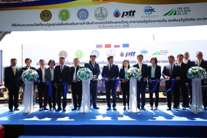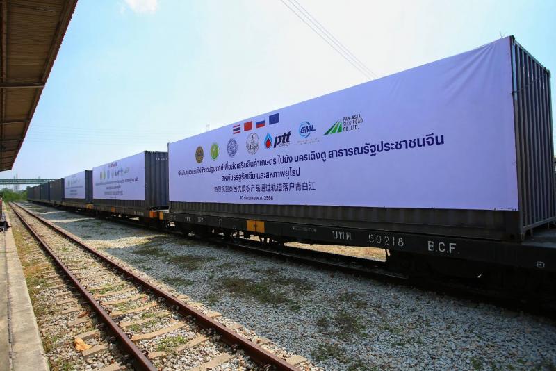 นายณกรณ์ กล่าวเพิ่มเติมว่า การลงพื้นที่ครั้งนี้ รมว.เกษตรฯ ได้ปล่อยขบวนรถไฟเที่ยวปฐมฤกษ์ เพื่อส่งเสริมการค้าสินค้าเกษตรไปยังนครเฉิงตู สาธารณรัฐประชาชนจีน สหพันธรัฐรัสเซีย และสหภาพยุโรป ณ สถานีรถไฟมาบตาพุด โดยรถไฟเที่ยวนี้จัดส่งสินค้าเกษตรนำร่อง ได้แก่ ข้าวหอมมะลิ ทุเรียนแช่แข็ง รวมถึงยางพารา ซึ่งจะเดินทางถึงสถานีเฉิงตู ในวันที่ 15 ธันวาคม 2566 ก่อนเดินทางต่อเนื่องไปสหพันธรัฐรัสเซีย และสาธารณรัฐโปแลนด์ตามลำดับ ถือเป็นการขับเคลื่อนขยายตลาดสินค้าเกษตรในต่างประเทศ เพื่อช่วยเหลือพี่น้องเกษตรกรในการเพิ่มโอกาสทางการค้า เพิ่มช่องทางจำหน่ายผลผลิตทางการเกษตร ส่งเสริมให้สินค้าเกษตรไทยเข้าสู่ตลาดการค้าต่างประเทศได้มากขึ้น นอกจากนี้ ยังมีโอกาสได้พบปะเกษตรกรชาวสวนยาง ร่วมพูดคุย รับฟังความความต้องการของชาวสวนยางในพื้นที่ เพื่อนำไปกำหนดนโยบายและแนวทางช่วยเหลือพี่น้องเกษตรกรต่อไป