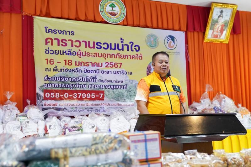 นายโกศล บุญคง กล่าวว่า กยท. จัดคาราวานฯ รวมน้ำใจลงพื้นที่ จ.ปัตตานี ยะลา และนราธิวาส ซึ่งเป็นพื้นที่ได้รับผลกระทบจากอุทกภัยรุนแรง โดยเส้นทางการเดินทางของคาราวานฯ เริ่มจาก กยท. สำนักงานใหญ่ และระหว่างเส้นทางได้แวะรับสิ่งของจากจุดรับบริจาค อาทิ น้ำดื่ม ข้าวสาร อาหารแห้ง และเครื่องนุ่งห่ม รวมถึงพรมละหมาด ซึ่งมีการรวบรวมจาก กยท. จังหวัดและสาขาต่างๆ รวมถึงเครือข่ายสถาบันเกษตรกรฯ และหน่วยงานพันธมิตรของ กยท. ในแต่ละพื้นที่ พร้อมเคลื่อนย้ายมามอบแก่ผู้ประสบภัย เป็นการสร้างขวัญกำลังใจและบรรเทาความเดือดร้อน นอกจากนี้ ยังได้มอบเงินสวัสดิการเพื่อเกษตรกรชาวสวนยาง ตามมาตรา 49 (5) กรณีเกษตรกรฯ เสียชีวิตแก่ทายาท รายละ 30,000 บาท อีกด้วย