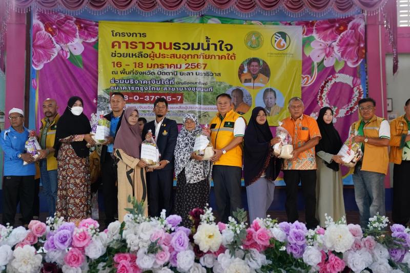 การยางแห่งประเทศไทย (กยท.) จัดทัพคาราวานรวมน้ำใจ ลงพื้นที่ช่วยเหลือเยียวยาต่อเนื่องผู้ประสบอุทกภัย 3 จังหวัดชายแดนใต้ ระหว่างวันที่ 16-18 ม.ค. ที่ผ่านมา ตามข้อสั่งการ รมว.เกษตรฯ นำทีมโดย ดร.เพิก เลิศวังพง ประธานบอร์ด กยท. และ นายโกศล บุญคง รองผู้ว่าการด้านธุรกิจ พร้อมผู้บริหารและพนักงาน กยท. รวบรวม - ส่งมอบถุงยังชีพ พร้อมฝากเกษตรกรที่สวนยางเสียหาย เร่งแจ้งขอรับเงินสวัสดิการเยียวยา ภายใน 30 วัน หลังน้ำลดกลับสู่สภาวะปกติ