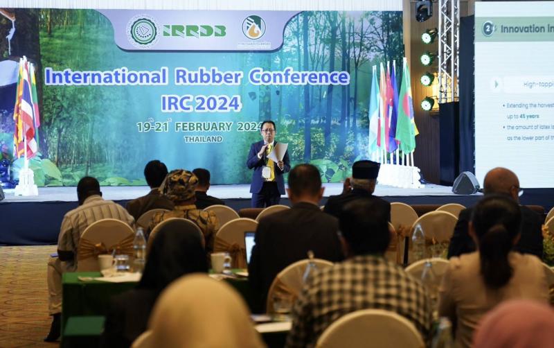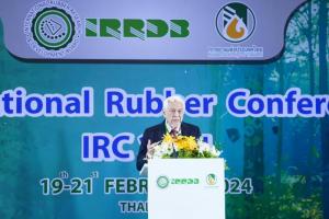 วันนี้ (19 ก.พ. 67) การยางแห่งประเทศไทย (กยท.) ร่วมกับ สภาวิจัยและพัฒนายางระหว่างประเทศ (International Rubber Research and Development Board: IRRDB) เปิดเวทีการประชุมวิชาการยางระหว่างประเทศ (International Rubber Conference : IRC 2024) ภายใต้แนวคิด "จุดประกายเสริมสร้างนวัตกรรมยางพารามุ่งสู่อนาคตที่ยั่งยืน โดยได้รับเกียรติจาก ร้อยเอก ธรรมนัส พรหมเผ่า รัฐมนตรีว่าการกระทรวงเกษตรและสหกรณ์ เป็นประธานเปิดการประชุมฯ พร้อมมอบแนวทางขับเคลื่อนอุตสาหกรรมยาง รับมือความท้าทายในทุกมิติ มุ่งผลักดันงานวิจัย - นวัตกรรม สู่การพัฒนาวงการยางตลอดห่วงโซ่อุปทาน โดยการประชุมจัดในระหว่างวันที่ 19 21 กุมภาพันธ์ 2567 ณ โรงแรมดุสิตธานี พัทยา จ.ชลบุรี