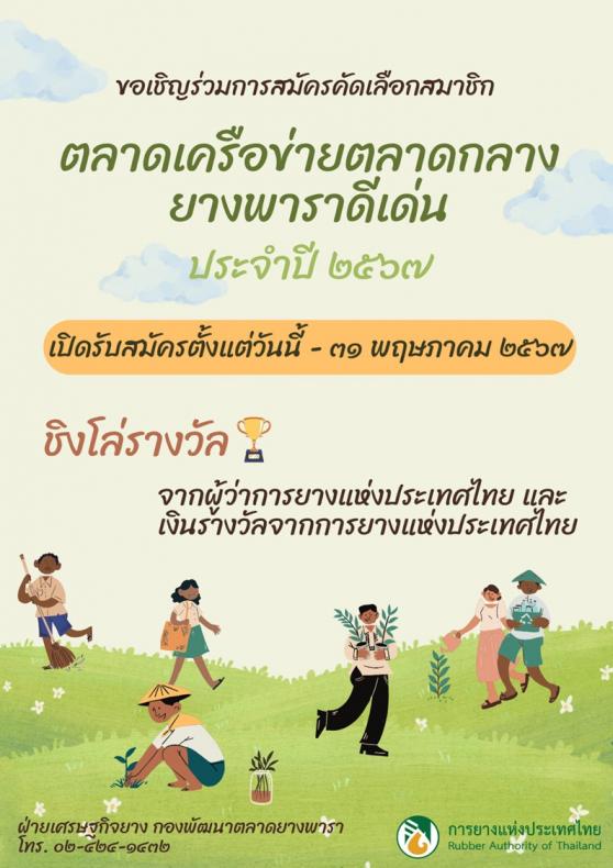 กยท. จัดประกวด “ตลาดเครือข่ายตลาดกลางยางพาราดีเด่น ประจำปี 2567” ชิงโล่และเงินรางวัล ยื่นสมัครตั้งแต่วันนี้ – 31 พฤษภาคม นี้