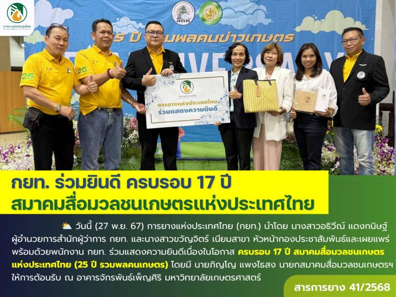 กยท. ร่วมยินดี ครบรอบ 17 ปีสมาคมสื่อมวลชนเกษตรแห่งประเทศไทย