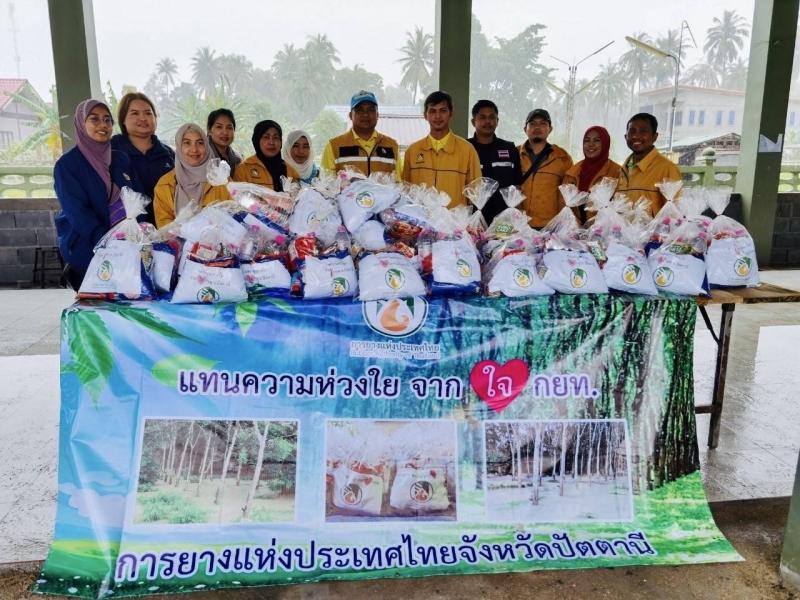 นายสุขทัศน์ ต่างวิริยกุล รักษาการแทนผู้ว่าการการยางแห่งประเทศไทย เปิดเผยว่า จากสถานการณ์ฝนตกหนักในพื้นที่ภาคใต้ติดต่อกันหลายวันส่งผลให้เกิดน้ำท่วมสูงหลายอำเภอในพื้นที่จังหวัดสงขลา ปัตตานี ยะลา และนราธิวาส ซึ่ง กยท. ได้รับทราบความเดือดร้อนของเกษตรกรชาวสวนยางและประชาชนที่อาศัยในพื้นที่ดังกล่าว เบื้องต้น กยท. อนุมัติจัดสรรเงินช่วยเหลือตามหลักเกณฑ์การสนับสนุนปัจจัยยังชีพกรณีครัวเรือนเกษตรกรชาวสวนยางประสบภัยพิบัติทางธรรมชาติ ตามมาตรา 49(5) ซึ่งจัดสรรเงินจำนวน 400,000 บาท (จังหวัดละ 100,000 บาท) เพื่อเป็นค่าใช้จ่ายให้ กยท. ในพื้นที่ในการส่งมอบถุงยังชีพที่บรรจุเครื่องอุปโภค บริโภค ยารักษาโรค และสิ่งของที่จำเป็น ให้กับผู้ประสบอุทกภัยในพื้นที่ดังกล่าว อย่างไรก็ตาม กยท. อยู่ระหว่างแก้ไขหลักเกณฑ์วงเงินช่วยเหลือ เพื่อให้สอดคล้องกับพื้นที่และจำนวนเกษตรกรที่ได้รับความเดือดร้อน ซึ่งล่าสุดได้จัดถุงยังชีพและเริ่มนำไปแจกจ่ายให้แก่ผู้ประสบภัยแล้ว ทั้งนี้ กยท. ยังได้ตั้งโรงครัวเพื่อทำอาหารแจกจ่าย และให้ความอนุเคราะห์สถานที่สำนักงานของ กยท. เพื่อเป็นที่พักอาศัย จอดยานพาหนะชั่วคราวแก่ผู้ประสบภัยในแต่ละพื้นที่ด้วย