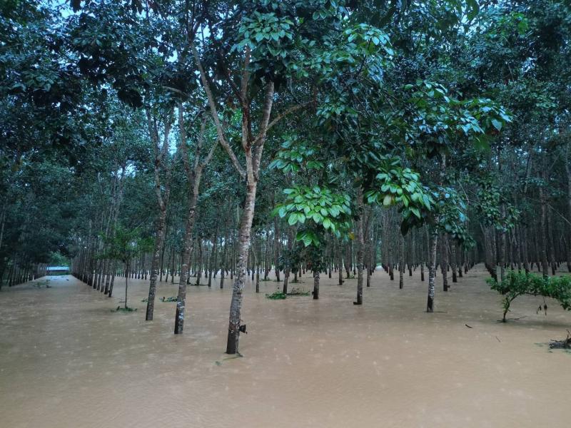 การยางแห่งประเทศไทย (กยท.) ติดตามสถานการณ์ฝนตกหนักทั่วภาคใต้ กระทบพื้นที่สวนยาง เปิดกรีด 11 จังหวัด กว่า 5.5 ล้านไร่ คาดการณ์ผลผลิตยางธันวาคม 67 หายจากระบบตลาดถึง 1.4 แสนตัน ส่งเจ้าหน้าที่เร่งบรรเทาความเดือดร้อนเบื้องต้น ก่อนสำรวจความเสียหายและเยียวยาหลังน้ำลด