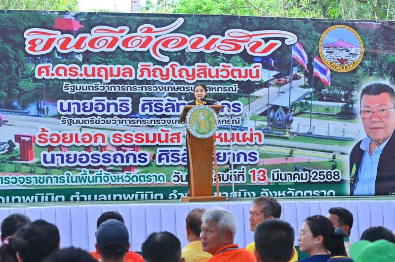 วันนี้ (13 มี.ค. 68) ณ วัดเทพมิตร อ.เขาสมิง จ.ตราด – การยางแห่งประเทศไทย (กยท.) จัดโครงการอบรมเชิงปฏิบัติการ หลักสูตร "การส่งเสริมการใช้น้ำหมักชีวภาพปลาหมอคางดำ เพื่อฟื้นฟูสวนยางพาราที่เป็นโรคใบจุดกลมจากเชื้อ Colletotrichum Siamense (ใบร่วงชนิดใหม่) ประจำปี 2568” โดยได้รับเกียรติจาก ศ.ดร.นฤมล ภิญโญสินวัฒน์ รัฐมนตรีว่าการกระทรวงเกษตรและสหกรณ์ มอบน้ำหมักปลาหมอคางดำ กว่า 500 ลิตร ถึงมือพี่น้องชาวสวนยาง จ.ตราด พร้อมมอบนโยบายการดำเนินงานของกระทรวงฯ และรับฟังข้อคิดเห็นของเกษตรกรในพื้นที่ โดยมี คณะผู้บริหาร กยท. นำโดย ดร.เพิก เลิศวังพง (ประธานกรรมการ กยท.) และ นายโกศล บุญคง รองผู้ว่าการด้านบริหาร เข้าร่วมกิจกรรม
