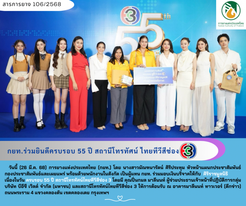 กยท.ร่วมยินดีครบรอบ 55 ปี สถานีโทรทัศน์ ไทยทีวีสีช่อง 3