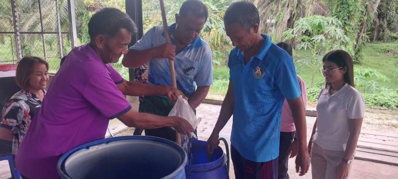 เมื่อวานนี้ ( 24 พ.ค. 68) พื้นที่ จ. พังงา การยางแห่งประเทศไทย (กยท.) นำโดย นายสมยศ รักษ์กำเนิด ผู้อำนวยการ กยท. จ.พังงา พร้อมพนักงาน กยท. ในพื้นที่ ให้การต้อนรับ พันโทโสมนัส ลพล้ำเลิศ หัวหน้าชุดปฏิบัติการน้ำหมักชีวภาพปลาหมอคางดำ (ชุดเฉพาะกิจ) และ นายชำนาญ ธนะภพ หัวหน้ากลุ่มถ่ายทอด เทคโนโลยี ฝ่ายส่งเสริมและพัฒนาการผลิต (ฝสผ.) พร้อมทีมชุดเฉพาะกิจฯ ลงพื้นที่เพื่อเร่งหาแนวทางแก้ไขปัญหายางพารา ซึ่งมีผลจากสภาพอากาศใน จ.พังงา มีฝนตกตลอดปี ส่งผลกระทบโดยตรงต่อการกรีดยางพารา คือ จำนวนวันกรีดยางจึงลดลงทำให้เกษตรกรมีรายได้ลดลงด้วย กยท. จึงมุ่งเน้นการฟื้นฟูสวนยางให้มีความสมบูรณ์ แข็งแรงและทนต่อโรค เพื่อเพิ่มปริมาณผลผลิตให้มากขึ้น โดยการใช้น้ำหมักชีวภาพปลาหมอคางดำในสวนยาง ในครั้งนี้กยท. จึงลงพื้นที่ถ่ายทอดองค์ความรู้ในการใช้น้ำหมักชีวภาพฯ แก่สมาชิกสหกรณ์กองทุนสวนยางบางวัน จำกัด โดยมีผู้สนใจเข้าร่วมอบรมกว่า 30 คน ซึ่งจะช่วยให้เกษตรกรเข้าใจวิธีการนำน้ำหมักชีวภาพฯ ที่มีธาตุอาหารหลักและรองไปใช้ฟื้นฟูหน้ายางทรุดโทรม เพิ่มปริมาณน้ำยาง และสามารถใช้ได้ในฤดูฝน เกษตรกรมีผลผลิตยางให้เก็บเกี่ยวได้มากขึ้นต่อเนื่อง ในวันเดียวกัน ทีมชุดเฉพาะกิจฯ ได้เดินทางไปสาธิตวิธีการใช้น้ำหมักชีวภาพฯ บำรุงรักษาสวนยางพารา ในพื้นที่สวนยางของนางวิภา กาลามเกษตร์ ซึ่งจะใช้เป็นจุดทดลองศึกษาเพื่อเผยแพร่ผลการใช้น้ำหมักชีวภาพฯ ของ กยท.พังงา ก่อนขยายผลไปใช้ในพื้นที่อื่นต่อไป ถือเป็นอีกแนวทางหนึ่งที่ กยท.หวังจะช่วยเพิ่มรายได้ให้ชาวสวนยางในพื้นที่ โดยการส่งเสริมพัฒนาสวนยางให้เกิดความยั่งยืนอย่างแท้จริง ควบคู่ส่งเสริมการปลูกพืชร่วมยาง เช่น ทุเรียน สะตอ มังคุด และลองกอง เพื่อกระจายความเสี่ยงและเพิ่มรายได้ในระยะยาวด้วย