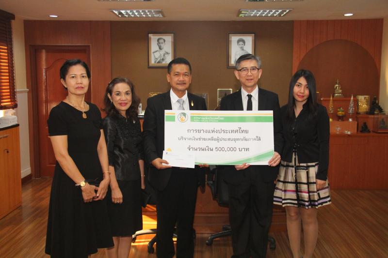 การยางเเห่งประเทศไทยนำโดย นายพูลสุข อุเทนพันธ์ ผู้อำนวยการสำนักผู้ว่าการ พร้อมด้วยพนักงาน เป็นผู้เเทนมอบเงินช่วยเหลือในโครงการ กยท. รวมน้ำใจช่วยภัยน้ำท่วมภาคใต้ เป็นเงินจำนวน 500,000 บาท ให้เเก่กระทรวงเกษตรเเละสหกรณ์ เพื่อนำไปช่วยเหลือผู้ประสบอุทกภัย โดยมีนายสุรพงษ์ เจียสกุล รองปลัดกระทรวงเกษตรเเละสหกรณ์ เป็นผู้รับมอบเงินบริจาค ณ กระทรวงเกษตรและสหกรณ์