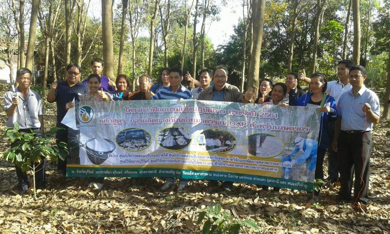วันที่ 20 มกราคม 2561 สำนักงานตลาดกลางยางพาราหนองคาย ร่วมกับศูนย์บริการทดสอบรับรองภาคตะวันออก ศูนย์บริการทดสอบรับรองภาคใต้ และศูนย์วิจัยยางบุรีรัมย์ ได้ร่วมกันจัดอบรมหลักสูตรการผลิตยางก้อนถ้วยมาตรฐาน GAP สำหรับเกษตรกร โดยมีเจ้าหน้าที่การยางแห่งประเทศไทยจังหวัดนครพนม ร่วมสังเกตการณ์ และมีเกษตรกรชาวสวนยาง กลุ่มสหกรณ์การเกษตรบ้านแพง ต.บ้านแพง อ.บ้านแพง จ.นครพนมจำนวน 20 คนให้ความสนใจเข้าลงทะเบียนและรับการอบรมหลักสูตรดังกล่าว