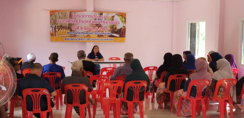 กยท.สาขารัตภูมิ จัดอบรมโครงการ ฝึกอบรมการผลิตยางแผ่นรมควันที่ดี GMP ณ สหกรณ์กองทุนสวนยาง บ้านคลองต่อ จำกัด ( 8/06/2561)