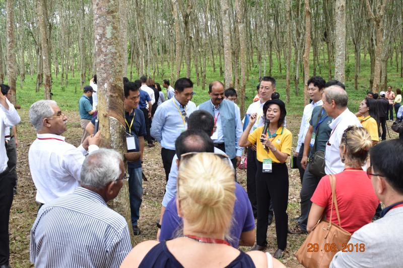 วันที่ 29 มิถุนายน 2561 การยางแห่งประเทศไทยร่วมกับกระทรวงการต่างประเทศและสำนักงานเศรษฐกิจการเกษตร ได้จัดโครงการเสริมสร้างศักยภาพเพื่อขยายตลาดคู่ค้ายางพาราไทย ณ จ. กระบี่ และตรัง โดยมีผู้เข้าร่วมโครงการประกอบด้วยคณะทูตจากสหภาพยุโรป ลาตินอเมริกา อเมริกาใต้ และผู้ประกอบการจากต่างประเทศ จำนวน 150 คน เข้าเยี่ยมชมการผลิตยางแผ่นรมควันมาตรฐาน GMP ณ สหกรณ์กองทุนสวนยางวังคีรี จำกัด อ. ห้วยยอด จ. ตรัง โดยมีผู้ว่าราชการจังหวัดตรังนายศิริพัฒ พัฒกุล กล่าวต้อนรับนายกฤษฏา บุญราช รัฐมนตรีว่าการกระทรวงเกษตรและสหกรณ์ พร้อมกับคณะทูต ผู้ประกอบการ เจ้าหน้าที่ระดับสูงจากกระทรวงเกษตรและสหกรณ์ ให้ทราบวิธีการผลิตยางแผ่นรมควันของสถาบันเกษตรกร และได้เข้าเยี่ยมชมโรงอัดก้อนยางมาตรฐาน GMP ชุมนุมสหกรณ์ตรัง จำกัด อ. เมือง จ. ตรัง เพื่อเป็นการเผยแพร่ประชาสัมพันธ์การผลิตยางเกรดพรีเมี่ยมที่ทำให้ทั่วโลกให้การยอมรับ คุณภาพยางไทยจากสถาบันเกษตรกรที่มีการทวนสอบกลับได้และใช้สมบัติเชิงวิทยาศาสตร์เป็นที่ยอมรับจากวงการยางในระดับสากล ซึ่งทั้งสองแห่งบรรยายโดยนางปรีดิ์เปรม ทัศนกุล ผู้อำนวยการศูนย์บริการทดสอบรับรองภาคใต้ ฝ่ายวิจัยและพัฒนาอุตสาหกรรมยาง