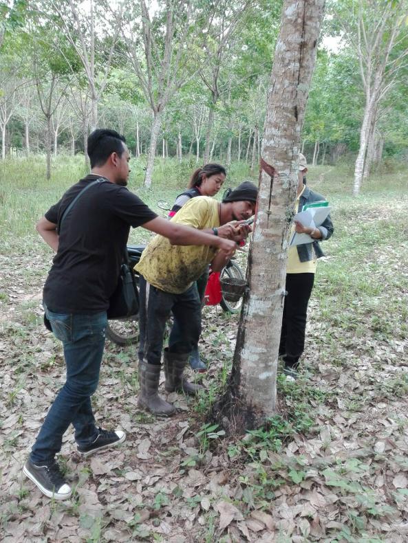 คณะ GAP ศูนย์บริการทดสอบรับรองภาคใต้ ลงพื้นที่ อ.นาหม่อม จ. สงขลา ให้คำแนะนำสวนยางพารา GAP (10/06/62)