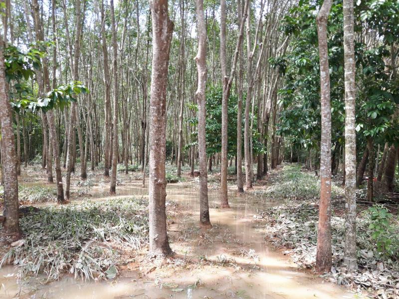นอกจากนี้ กรณีสวนปลูกแทนที่ประสบอุทกภัยซึ่งหากพบว่าเสียสภาพสวน จะให้ระงับการ ปลูกแทน โดยไม่เรียกเงินคืนในส่วนที่เสียหาย จากนั้นจึงอนุมัติให้การปลูกแทนใหม่ แต่ต้องไม่เกินเนื้อที่ที่ระงับการปลูกแทน กรณีไม่เสียสภาพสวน ต้นยางหรือไม้ยืนต้นชนิดอื่น (พืชหลัก) อายุไม่เกิน 2 ปีครึ่ง ได้รับความเสียหายหนัก ไม่สามารถค้ำยันได้ ต้องปลูกซ่อมเท่านั้น กยท. จะช่วยเหลือเป็นเงินค่าปลูกซ่อมครั้งเดียว อัตราต้นละ 45 บาท ส่วนต้นยางหรือไม้ยืนต้นชนิดอื่น ที่เสียหายเอนล้ม แต่สามารถตัดแต่งและ ค้ำยันให้ตรงได้ กยท. จะช่วยเหลือค่าค้ำยันครั้งเดียว โดยต้นยางที่มีอายุตั้งแต่ 2 ปีครึ่งขึ้นไป แต่ไม่เกิน 3 ปี อัตราต้นละ 35 บาท และต้นยางฯ อายุตั้งแต่ 3 ปีขึ้นไป อัตราต้นละ 110 บาท