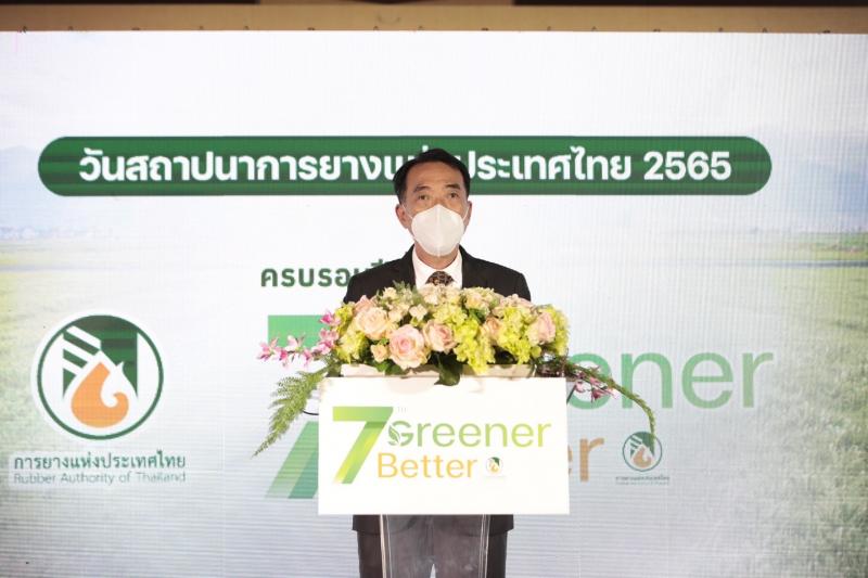 นายณกรณ์ ตรรกวิรพัท ผู้ว่าการการยางแห่งประเทศไทย (กยท.) กล่าวว่า ปัจจุบันองค์กรชั้นนำต่างๆ ให้ความสำคัญกับเรื่องความยั่งยืนมากขึ้น กยท. จึงกำหนดแนวทาง ‘Greener Better’ ด้วยการสร้างนวัตกรรมทั้งผลิตภัณฑ์และสังคม ควบคู่ไปกับการให้ความสำคัญด้านสิ่งแวดล้อม โดยผลักดันโครงการบริหารจัดการ Carbon credit ในสวนยาง เพื่อลดต้นทุนการผลิตและเพิ่มรายได้ เนื่องจากยางพาราสามารถกักเก็บก๊าซคาร์บอนไดออกไซด์ได้ถึง 4.22 ตันต่อไร่ ถือเป็นโมเดลสำคัญให้กับพืชอื่นในการบริหารจัดการเรื่อง Carbon credit ต่อไป นอกจากนี้ กยท. ยังเร่งขับเคลื่อนโครงการนวัตกรรมทางการแพทย์และผลิตภัณฑ์ที่เป็นมิตรต่อสิ่งแวดล้อมตลอดจนห่วงโซ่ยางพารา เพื่อรองรับความต้องการของผู้บริโภคที่หันมาใส่ใจสิ่งแวดล้อมมากขึ้น และการเข้าสู่สังคมผู้สูงวัย ได้แก่ นวัตกรรม"มาตรฐานยางเครปบางสีน้ำตาลเกรดพรีเมียม” โดยใช้ กรดอินทรีย์ท่ีปลอดภัยต่อผู้ใช้และสิ่งแวดล้อม ทำให้ก้อนยางไม่ก่อมลพิษกลิ่นและน้ำเสีย ส่วนผลิตภัณฑ์ในอุตสาหกรรมทางการแพทย์ ได้แก่ หุ่นจำลองสำหรับฝึกเจาะหาก้อนเนื้อที่ผิดปกติในขาผู้ป่วย, หุ่น CPR (หุ่นฝึกช่วยชีวิต) ซึ่ง กยท. ได้แจกหุ่น CPR ให้หน่วยงานทางการแพทย์ สาธารณสุข หน่วยกู้ชีพและสถานศึกษา รวมจำนวน 80 ตัว ในโอกาสครบรอบวันสถาปนา กยท. ครบ 7 ปีด้วย