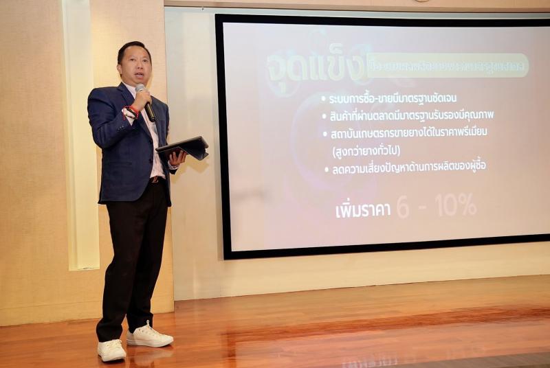 "การซื้อขายยางพรีเมียมผ่านตลาด กยท. ช่วยให้เกษตรกรที่ทำสวนยางตามมาตรฐานสากลมีตลาดรองรับ ขายยางได้ในราคาสูงกว่ายางทั่วไป ด้านผู้ซื้อจะได้รับยางที่มีคุณภาพและมาตรฐานรับรอง ลดความเสี่ยงของปัญหาในกระบวนการผลิต และเพิ่มคุณภาพของสินค้าที่นำยางไปเป็นวัตถุดิบ”