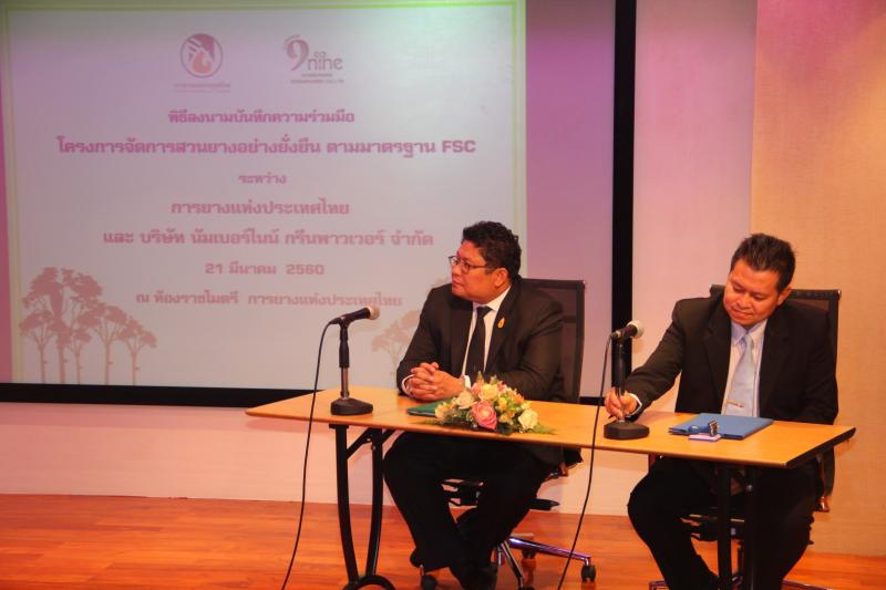 ด้าน ดร.วระชาติ ทนังผล กรรมการผู้จัดการ บริษัท นัมเบอร์ไนน์ กรีนพาวเวอร์ จำกัด กล่าวว่า บริษัท นัมเบอร์ไนน์ กรีนพาวเวอร์ จำกัด ประกอบกิจการด้านการผลิตและจัดจำหน่ายเชื้อเพลิงชีวมวลอัดเม็ด (Wood Pellet) จดทะเบียนเมื่อวันที่ 8 มีนาคม 2559 ด้วยทุนจดทะเบียน 5,000,000 บาท นอกจากการผลิตเชื้อเพลิงชีวมวลแล้ว ยังสนับสนุนให้เกษตรกรปลูกและรับซื้อไม้โตเร็ว มันสำปะหลัง และพืชอื่นๆ ที่สามารถนำมาเป็นวัตถุดิบในการแปรรูปเป็นพลังงานชีวมวล ซึ่งการทำบันทึกข้อตกลงความร่วมมือในครั้งนี้ เป็นโอกาสในการสนับสนุนสร้างรายได้ให้แก่เกษตรกร และกระตุ้นให้เกษตรกรชาวสวนยางเห็นถึงความสำคัญในการจัดการสวนยางให้อ ยู่ในระดับมาตรฐานระดับสากล โดยเฉพาะอย่างยิ่งมาตรฐาน FSC เนื่องจากมาตรฐานดังกล่าว จะเป็นการรับรองคุณภาพและที่มาของไม้ยางส่งออกจากไทย ว่าเป็นสินค้าคุณภาพที่เกิดจากการจัดการสวนยางอย่างถูกต้องตามมาตรฐานสากล เพื่อเป็นการเพิ่มมูลค่าในการขายไม้ยางพารา และผลิตภัณฑ์จากไม้ยางพาราไปยังต่างประเทศ