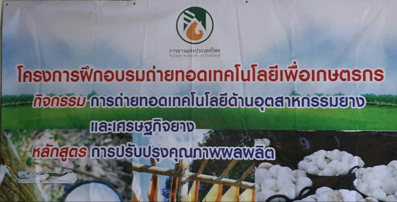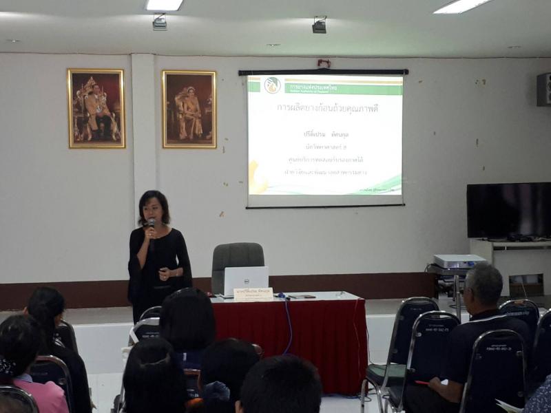เมื่อวันที่ 9 พฤษภาคม 2560 การยางแห่งประเทศไทยจังหวัดพัทลุง ได้เรียนเชิญอาจารย์ปรีดิ์เปรม ทัศนกุล ผู้อำนวยการศูนย์บริการทดสอบรับรองภาคใต้ ฝ่ายวิจัยและพัฒนาอุตสาหกรรมยาง เป็นวิทยากรบรรยายให้ความรู้แก่เกษตรกรและผู้นำเกษตรกรในเขต อ. บางแก้ว จำนวน 50 คน ณ การยางแห่งประเทศไทยจังหวัดพัทลุง สาขาบางแก้ว การจัดอบรมในครั้งนี้เป็นรุ่นที่ 3 ตามโครงการถ่ายทอดเทคโนโลยีเพื่อเกษตรกร หลักสูตรการปรับปรุงคุณภาพผลผลิต เพื่อให้ได้รับความรู้ ความเข้าใจในการผลิตยางก้อนถ้วยคุณภาพดี การผลิตยางแผ่นดิบและการคัดคุณภาพ การผลิตยางแผ่นรมควันให้ได้มาตรฐาน GMP และตลาดรับซื้อยางแผ่นรมควันในปัจจุบัน