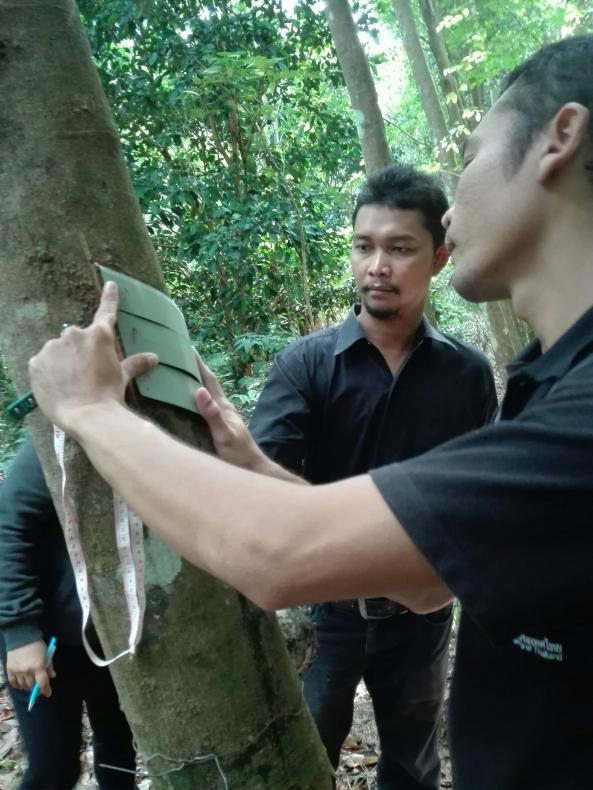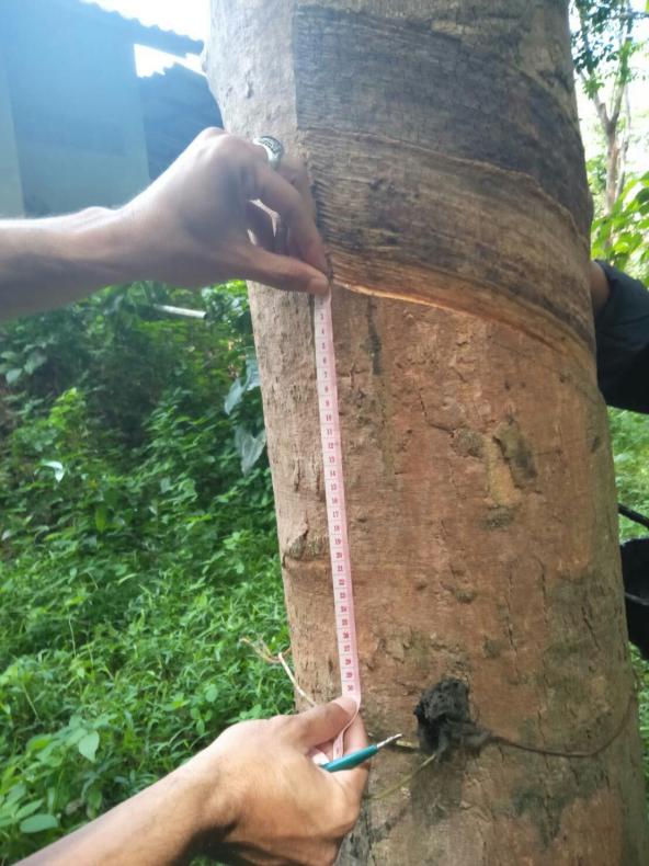 วันที่ 10 มิถุนายน 2562 คณะ GAP ศูนย์บริการทดสอบรับรองภาคใต้ ลงพื้นที่ บ้านควนจง ต.นาหม่อม อ.นาหม่อม จ. สงขลา นำโดย นายวีรยุทธ คงเทพ นักวิทยาศาสตร์ 3 และคณะ ศูนย์บริการทดสอบรับรองภาคใต้ ให้คำแนะนำหลักปฏิบัติที่ดีสำหรับสวนยางพารามาตรฐาน GAP แก่เกษตรกรชาวสวนยางบ้านควนจง โดยมีนายสนั่น เสมาธรรมจักร ผู้ใหญ่บ้าน ประสานงานพื้นที่ ในการให้คำแนะนำหลักปฏิบัติที่ดีสำหรับสวนยางพารา โดยมีเกษตรกรสมัครเข้าร่วมโครงการ การปฏิบัติที่ดีสำหรับสวนยางพารามาตรฐาน GAP จำนวน 9 แปลง จากการลงพื้นที่พบว่า บางแปลงมีการปลูกพืชเพื่อเสริมรายได้ ปลูกพืชคลุมดินเพื่อสร้างความชุ่มชื้นให้หน้าดิน สวนยางสะอาดโล่งเตียนไม่รก หน้ายางกรีดไม่บาด ยังไม่มีการแบ่งเส้นหน้า-หลัง มุมกรีดยังไม่ได้ที่ระดับ 30 องศา ระยะห่างระหว่างลิ้นกับถ้วยน้ำยางยังไม่ได้ 25-30 ซม. ระยะจากลิ้นถึงถ้วยรองรับน้ำยาง 10 ซม. รางรองรับน้ำยาง ถ้วยรองรับน้ำยาง ถังเก็บน้ำยาง ถังบรรจุน้ำยางก่อนส่งโรงงาน ยังไม่สะอาด ยังไม่มีการกรองน้ำยางในสวน แนะนำการกรีดยางให้ลึกถึงเยื่อเจริญไม่กรีดยางหนาเกิน 2 มม. ให้กรองน้ำยางในสวนก่อนนำสู่โรงงานทุกครั้งด้วยตะแกรงเบอร์ 40 เมช ไม่ใช้เศษหญ้ากรองน้ำยาง จึงได้ให้คำแนะนำเพื่อให้เกษตรกรปรับปรุงในสวนยางของตนเองและรอการตรวจประเมินรับรองแปลงยางมาตรฐานGAPต่อไป