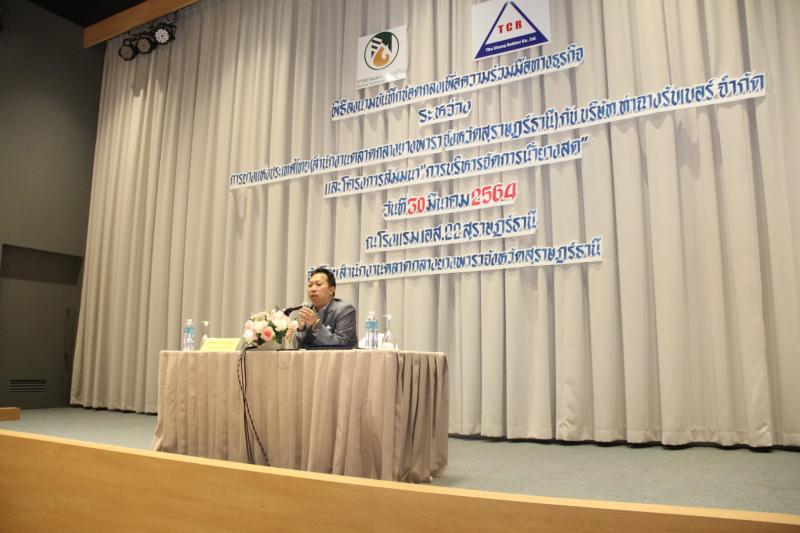 วันนี้ (30 มี.ค.64) กยท. ลงนาม MOU ทางธุรกิจร่วม บริษัท ท่าฉางรับเบอร์ จำกัด ในงานสัมมนา "การบริหารจัดการน้ำยางสด” ณ โรงแรม เอส. 22 อ.เมือง จ.สุราษฎร์ธานี มุ่งพัฒนาการบริหารจัดการน้ำยางสด สร้างมูลค่าเพิ่มด้านราคาให้ชาวสวนยางสุราษฎร์ธานี