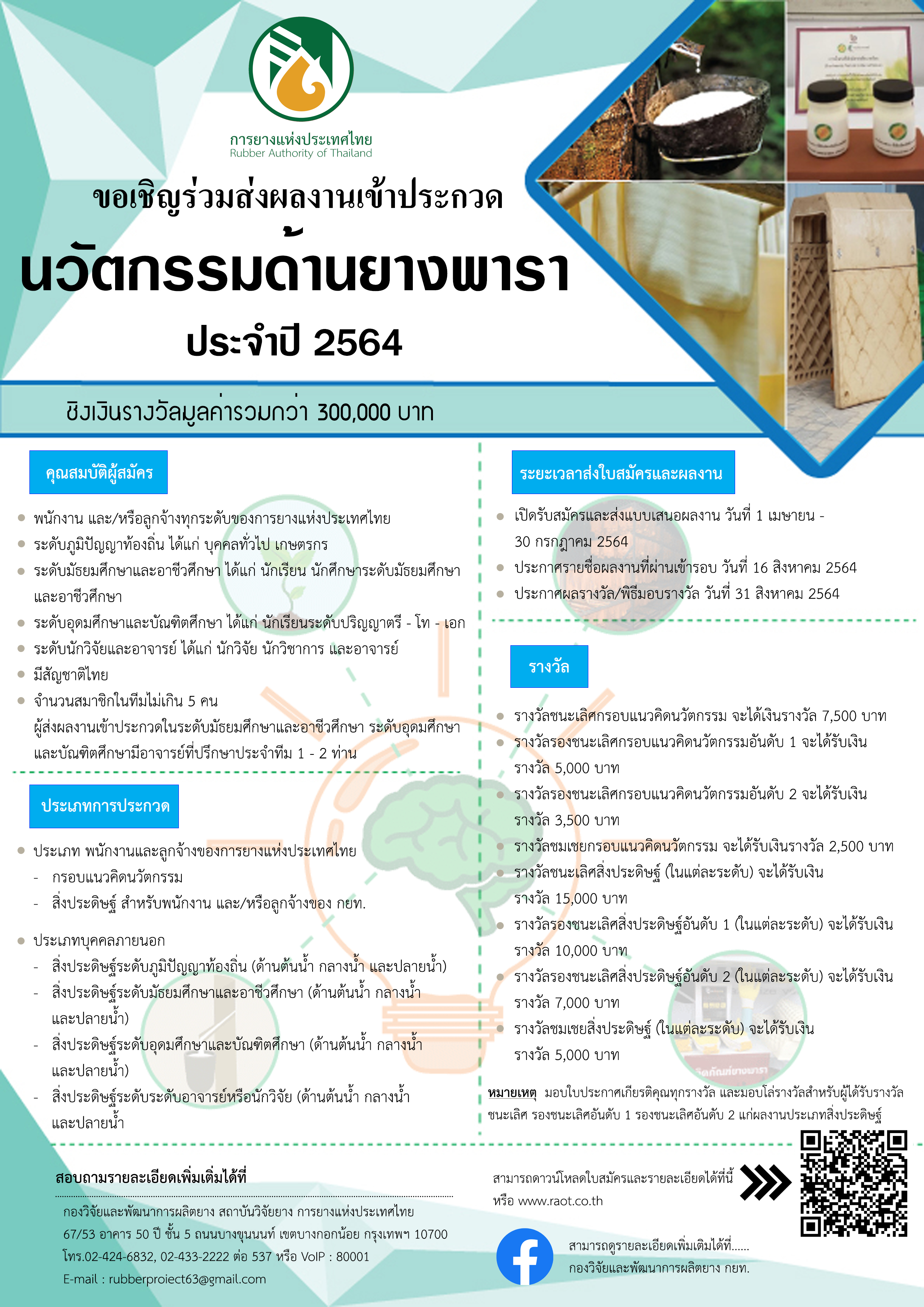 ประกาศ กยท. ขอเชิญร่วมส่งผลงานเข้าประกวด นวัตกรรมด้านยางพารา ประจำปี 2564