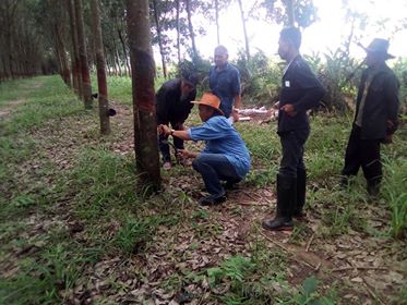 คณะ GAP ศูนย์บริการทดสอบรับรองภาคใต้ ลงพื้นที่ อ.นาหม่อม จ. สงขลา ให้คำแนะนำสวนยางพารา GAP (10/06/62)