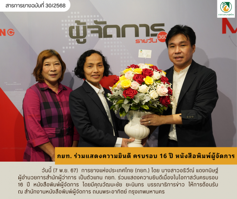 กยท. ร่วมแสดงความยินดี ครบรอบ 16 ปี หนังสือพิมพ์ผู้จัดการ