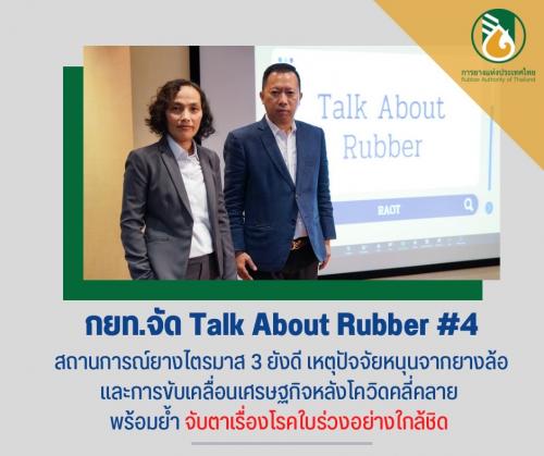 กยท.จัด Talk About Rubber #4 สถานการณ์ยางไตรมาส 3 ยังดีเหตุปัจจัยหนุนจากยางล้อและการขับเคลื่อนเศรษฐกิจหลังโควิดคลี่คลาย พร้อมย้ำ จับตาเรื่องโรคใบร่วงอย่างใกล้ชิด