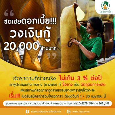 กยท. ไฟเขียว ชดเชยดอกเบี้ยผู้ประกอบการยาง - สถาบันเกษตรกรฯ วงเงินกู้ 2 หมื่นล. พร้อมเปิดยื่นคำขอแล้ว ตั้งแต่ 1 เม.ย. นี้