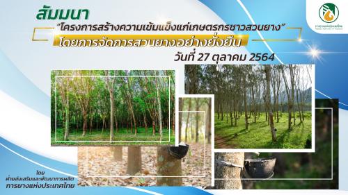 กยท. จัดสัมมนา โครงการสร้างความเข้มแข็งแก่เกษตรกรชาวสวนยางฯ ผ่านระบบออนไลน์ มุ่งเป้าพัฒนาการจัดการสวนยางอย่าง มั่นคง มั่งคั่ง ยั่งยืน