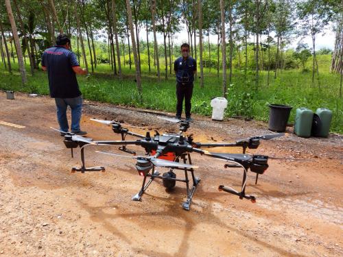 กยท. จับมือ กรมวิชาการเกษตร และภาคเอกชน ทดสอบเครื่องพ่นสารควบคุมโรคใบร่วงในยางพารา