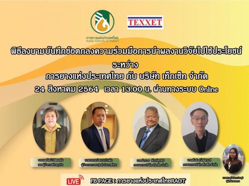 กยท. จับมือ เท็กเซ็ท พัฒนาเทคโนโลยีน้ำยางคอมพาวนด์เคลือบใยสังเคราะห์ ต่อยอดงานวิจัยเชิงพาณิชย์ สู่ภาคอุตสาหกรรมอย่างเป็นรูปธรรม