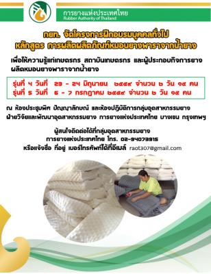 กยท. จัดโครงการฝึกอบรมบุคคลทั่วไป หลักสูตร การผลิตผลิตภัณฑ์หมอนยางพาราจากน้ำยาง
