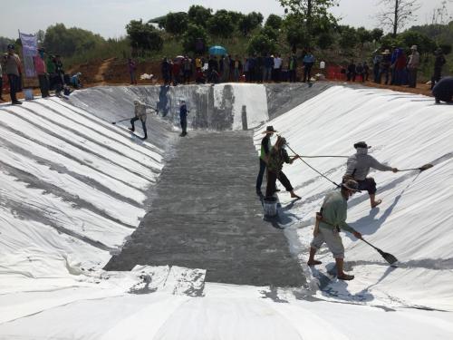 กยท. จัดกิจกรรม CSR พัฒนาแหล่งน้ำผิวดินขนาดเล็กบนที่สูง จ.น่าน ปูพื้นบ่อน้ำด้วยยางพารา มุ่งประโยชน์แก่คนในชุมชน พร้อมสนองนโยบายส่งเสริมใช้ยางในประเทศ